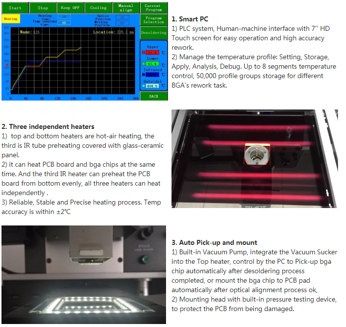 1. Cyflwyniad Cynnyrch Ledled y byd, mae miloedd o gwsmeriaid yn ymddiried yn system ailweithio Dinghua DH-A2E! · A2E gyda phen gwresogi aer poeth 1200 W a gwres isaf aer poeth 1200 W · Cynhesu gwaelod homogenaidd 2700 W IR · Cylched rheoli tymheredd caeedig gyda thermocwl · Lleoliad manwl gywir...