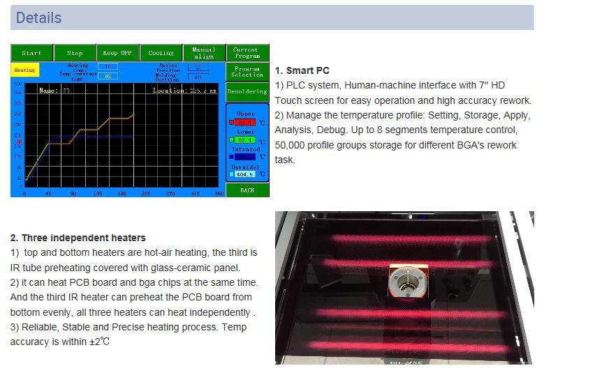* Cywirdeb mynegai BGA o fewn 0.01mm, Cyfradd llwyddiant trwsio 99.9%.