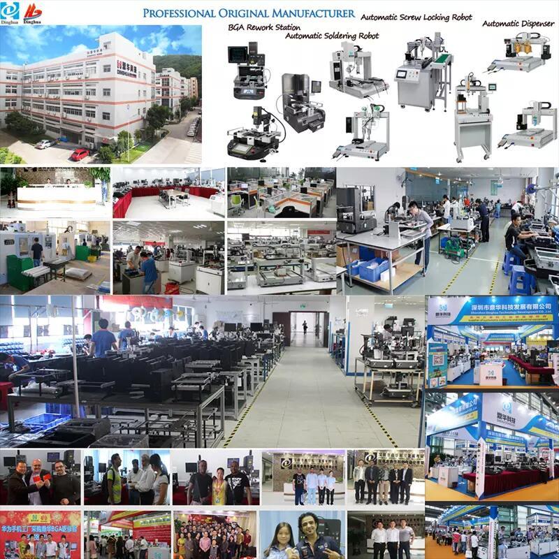 Shenzhen DINGHUA TECHNOLEG DATBLYGU CO, LTD (a elwir hefyd yn Shenzhen Dinghua Automation Innovation CO, Ltd) yn wneuthurwr proffesiynol blaenllaw Tsieina, a sefydlwyd yn 2011.It yw'r ffatri uniongyrchol, i ddylunio, cynhyrchu, gwerthu, ac allforio ar un llinell , yn cymryd rhan mewn gorsafoedd ail-weithio BGA, peiriannau sodro awtomatig a robotiaid, peiriannau cloi sgriwiau awtomatig a robotiaid, peiriannau dosbarthu awtomatig, yn ogystal â'r busnes ar gyfer peiriannau engrafu CNC, cynhyrchion LCD, ac offer ac ategolion sy'n gysylltiedig â'r UDRh. Rydym wedi ymrwymo i ddarparu'r offer mwyaf datblygedig gyda gwasanaeth amserol o ansawdd uchel i'n cwsmeriaid.